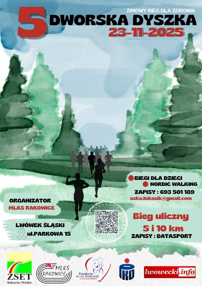Rozbiegajmy się zimą uczestnicząc w kolejnej edycji Dworskiej Dyszki organizowanej przez MLKS Rakowice oraz firmy i instytucje wspierające. Piąta edycja biegu organizowanego przez Międzyszkolny Ludowy Klub Sportowy Rakowice , Fundacje św. Krzysztofa we Lwówku Śląskim oraz Zespół Szkół Ekonomiczno – Technicznych w Rakowicach odbędzie się w niedzielę 23 listopada 2025 roku.